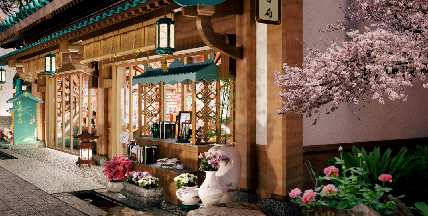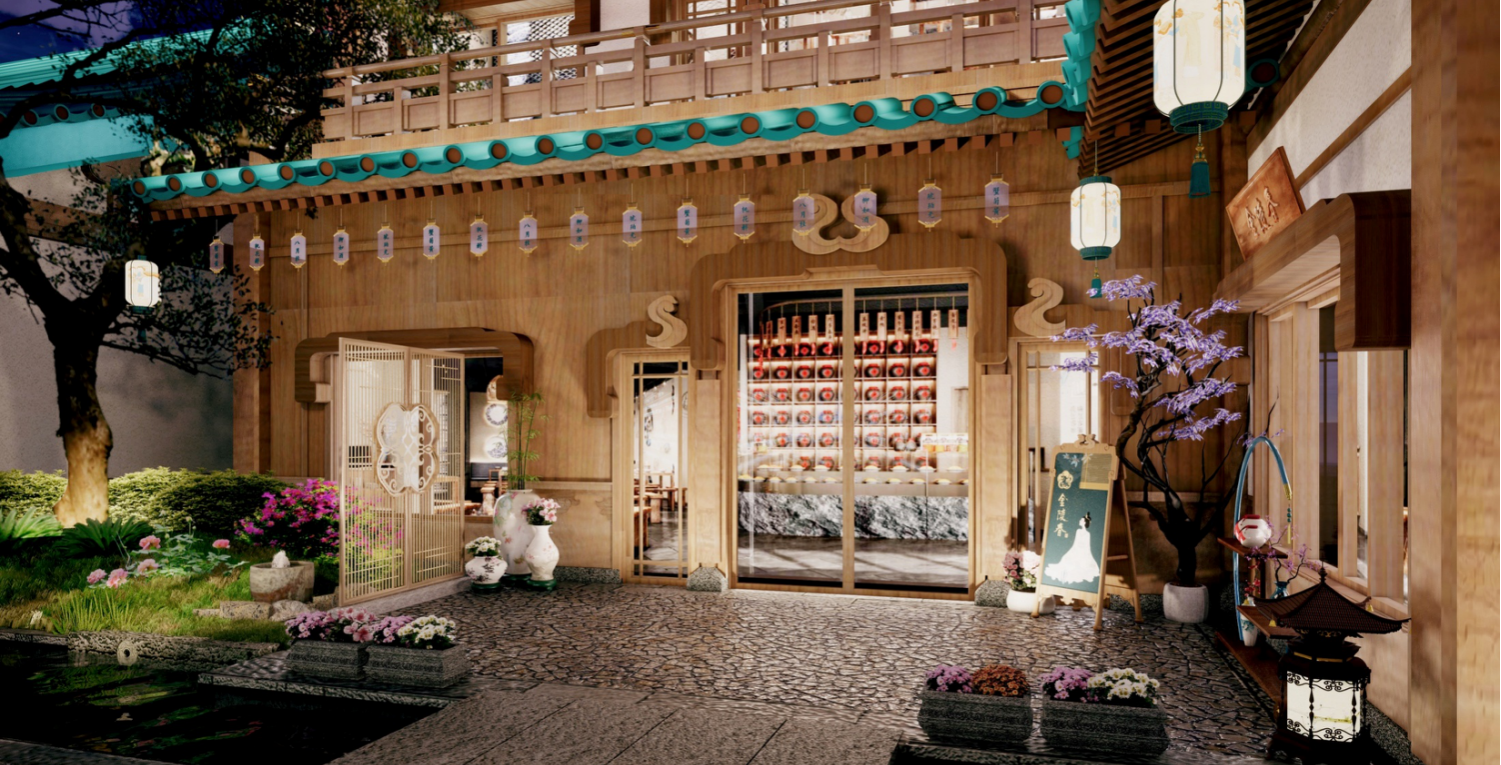 拈花灣文旅以當(dāng)下審美需求解讀傳統(tǒng)文化,搭建起浸入式體驗傳統(tǒng)文化的載體,為中華文化提供源源不斷的生命力。由拈花灣文旅傾力打造的南京·金陵小城,在央視鏡頭下,線條流暢的琉璃屋檐,錯落有致的亭臺樓閣,尤其是獨(dú)具特色的“金陵藍(lán)”格外醒目,盡顯金陵風(fēng)雅氣度。此次金陵小城的場景營造并非簡單的仿古堆砌,而是一場以空間為媒介的文化解碼之旅——通過將六朝美學(xué)基因拆解為“燈與石”“煙與水”“竹與花”三大符號系統(tǒng),再以當(dāng)代設(shè)計語言進(jìn)行轉(zhuǎn)譯重組,最終在虛實(shí)交錯的場景中重構(gòu)一個“既見古意,又見新生”的詩意場域。以調(diào)性為基準(zhǔn)確認(rèn)整體的色系,材質(zhì)、風(fēng)格等標(biāo)準(zhǔn);建筑本體的風(fēng)格強(qiáng)烈,按照本體肌理優(yōu)化、二次肌理提升的原則深化氛圍。