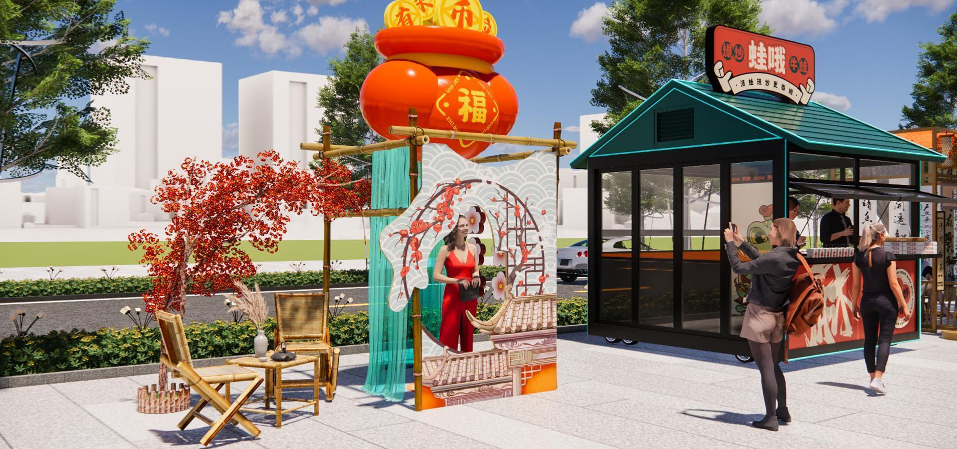 進(jìn)出水管、內(nèi)部吧臺、店招燈箱、皮膚設(shè)計