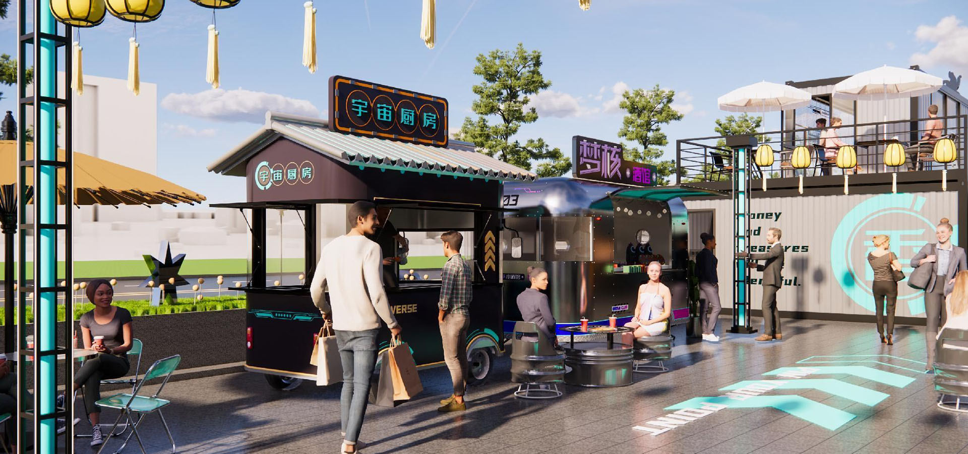 進(jìn)出水管,內(nèi)部吧臺(tái),定制氣模、店招燈箱、皮膚設(shè)計(jì)